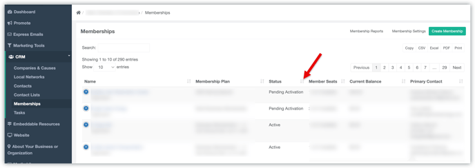 Sort memberships: Click the small arrow beside a column header to change the order of how memberships are displayed (e.g., alphabetical or by date).