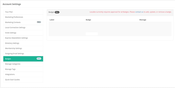 Once you've created the graphic image for your badges, you will need to add them to your Locable account. Do this by going into your Account Settings and choosing Badges.