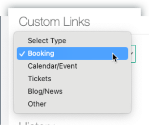 When adding a Custom Link, you will choose a type. Each type displays with a corresponding icon.