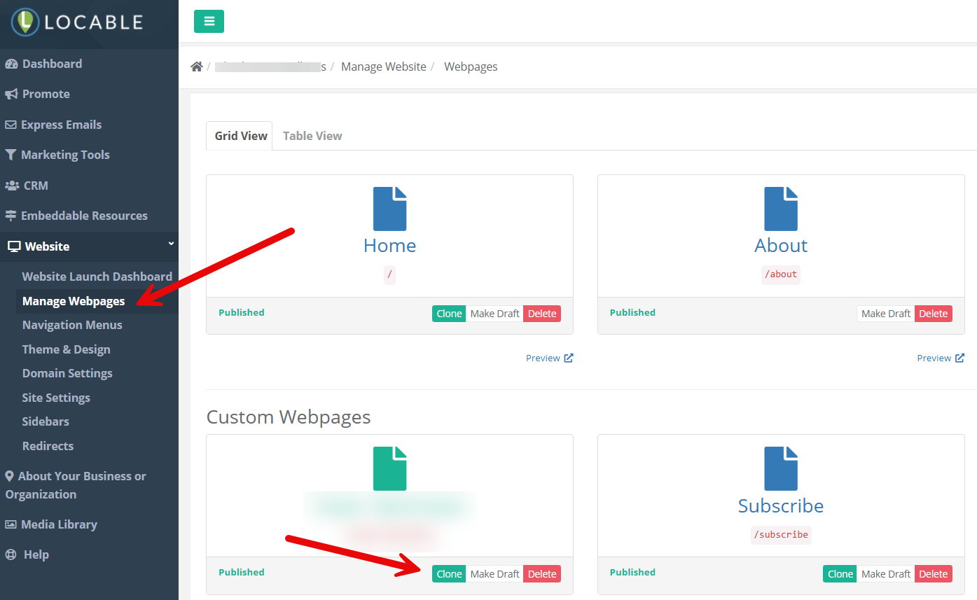 To Add a Page click Website > Manage Webpages in the left-hand menu. From here there are 2 ways to add a new page: