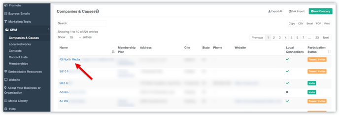 You can edit a company in your CRM by going to CRM > Companies & Causes and clicking on the company name. This will open the company record.