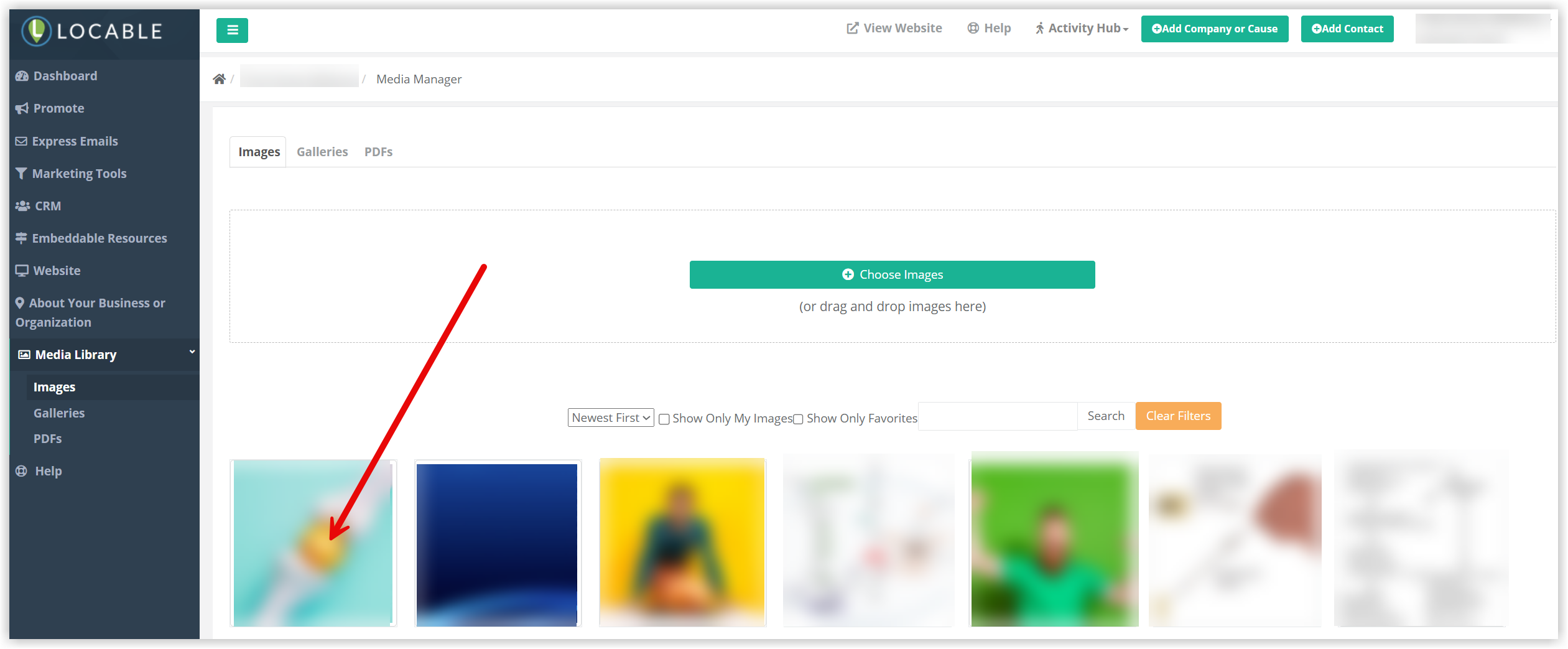 Images that you add to your Locable account can be accessed and edited by visiting Media Library > Images and then clicking the image to open it for editing.