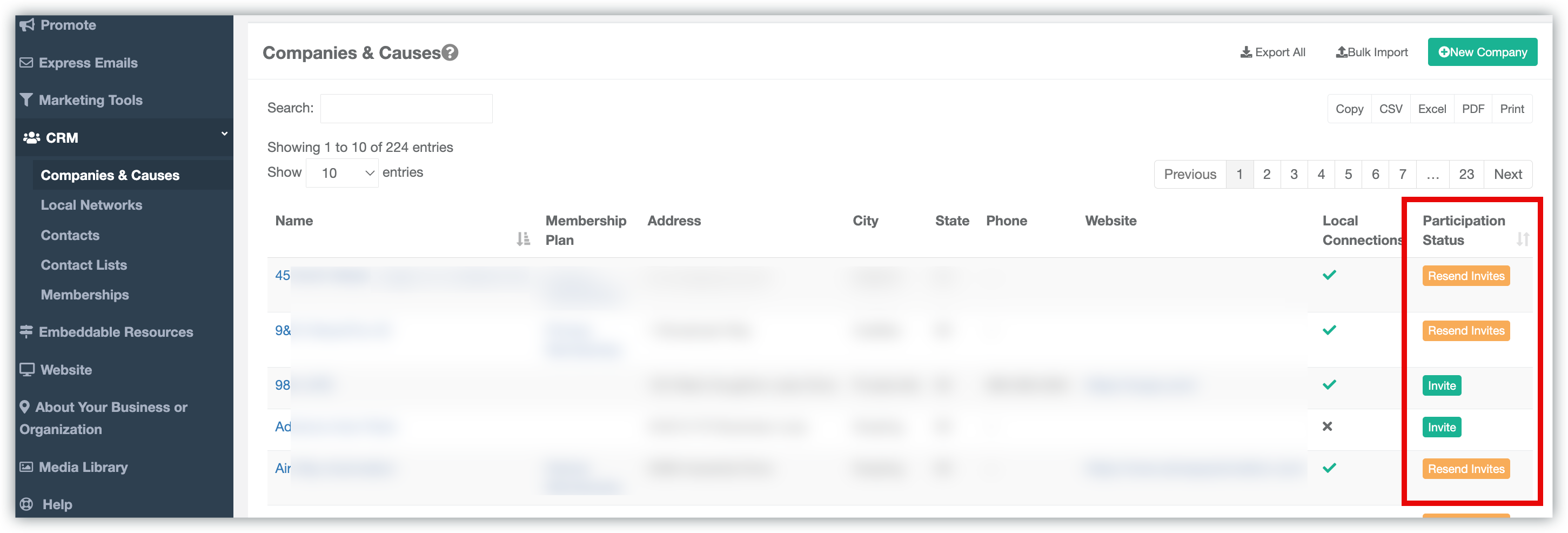 If a business in your CRM has not yet been Invited, it is very easy to send them an invitation, as long as you have an email address for them.