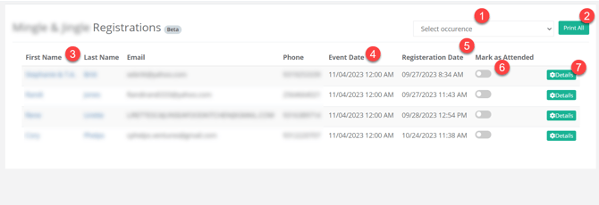 In Promote > Events you will see the 'Show Registrations' icon for any event post that has event registration enabled. Click to view the individual registrants for that event: